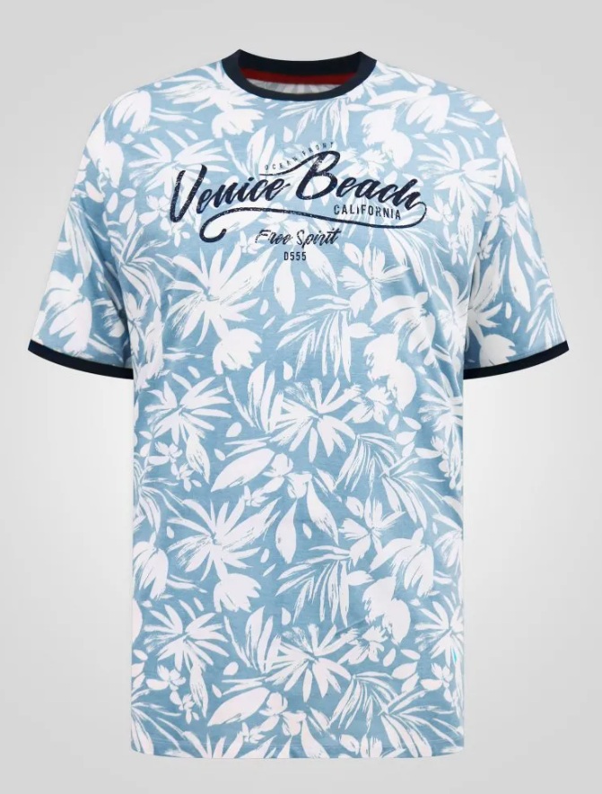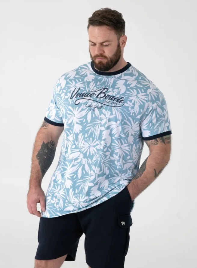 - T-shirt homme grande taille Venice Beach D555 avec imprimé intégral et poignets tricotés (SHOREHAM)
