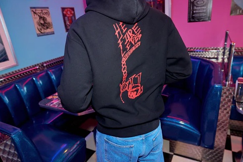 Inspiré par les flammes du Hellfire Club, ce hoodie rend hommage à la team la plus culte de Stranger Things. Avec son logo discret sur la poitrine et son visuel crayonné dans le dos, il évoque les sessions de jeu tendues, les dés maudits, et l’esprit de Eddie qui plane encore au-dessus de Hawkins. « The fire lives » : un rappel que certaines légendes ne s’éteignent jamais.