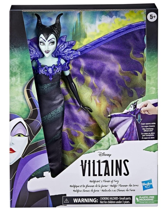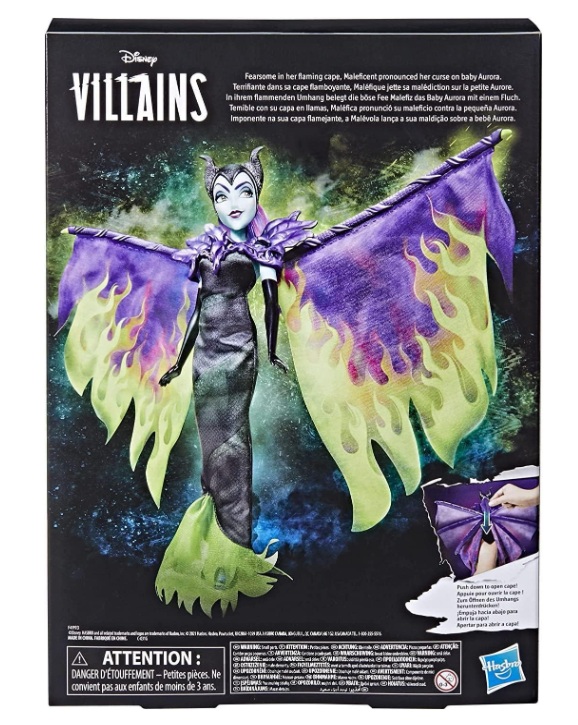 Dans la Belle au bois dormant de Disney, « Maléfique » place une malédiction sur la petite Aurore tout en s’enveloppant dans une cape de flammes vertes magiques. Cette poupée « Maléfique » et les flammes de la fureur rend hommage à cette scène emblématique avec sa cape flamboyante qui se déploie. Les enfants à partir de 5 ans vont adorer déployer sa cape et la refermer grâce au levier dans le dos de la poupée. Cette poupée mannequin Disney Villains inclut sa coiffe à cornes, un collier et une paire de chaussures amovibles.