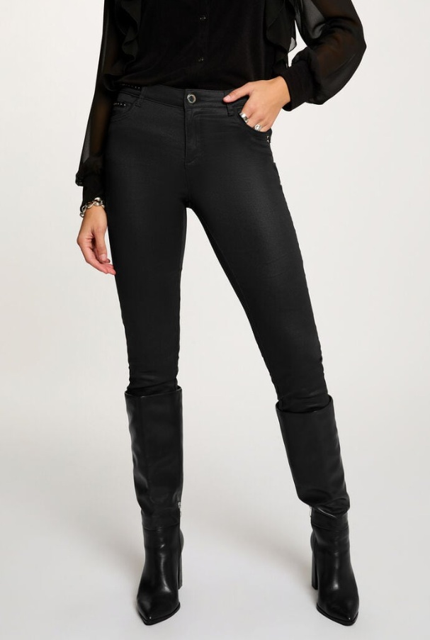 Esprit de matière oblige, ce pantalon coupe slim enduit signé Morgan pour femme sort le chic des sentiers battus. Sa coupe trapèze, son col montant, son élégance en impose dans le registre minimaliste.