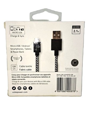 « FAB xxx » charge et synchronise tous les appareils Android sous le format Micro Usb (samrtphones, tablettes et objets connectés), en toute sécurité. Revêtu d’un textile tressé, il dispose de connecteurs métalliques et est élégant et résistant. La version 1,2 m possède en plus d’un enrouleur. Tous ces détails sophistiqués en font l’accessoire indispensable pour charger vos appareils.
