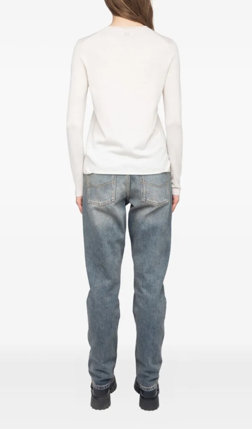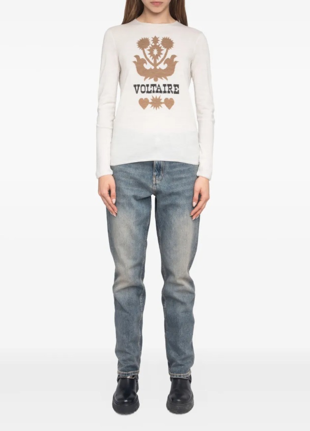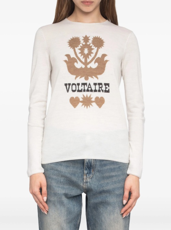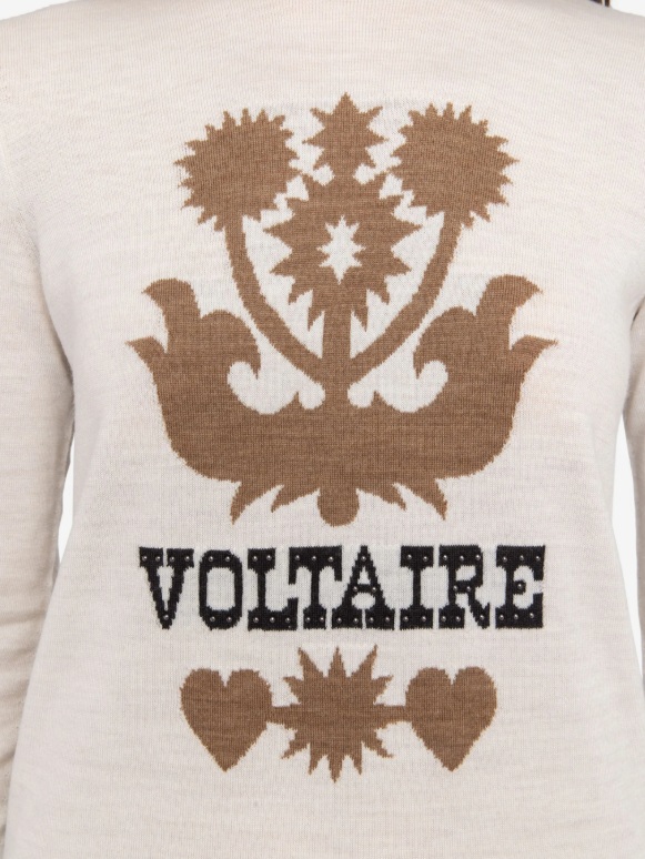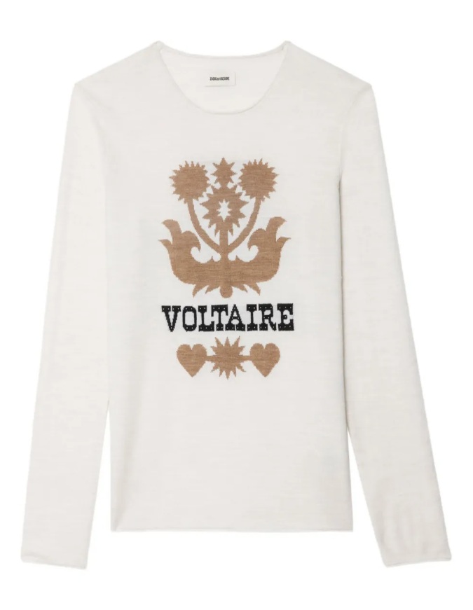 Pull à manches longues crème avec un motif floral et en forme de cœur brun,